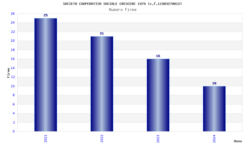 | Anno | Firme | Importi | Media | Naz. | Reg. | Prov. | Comu. |