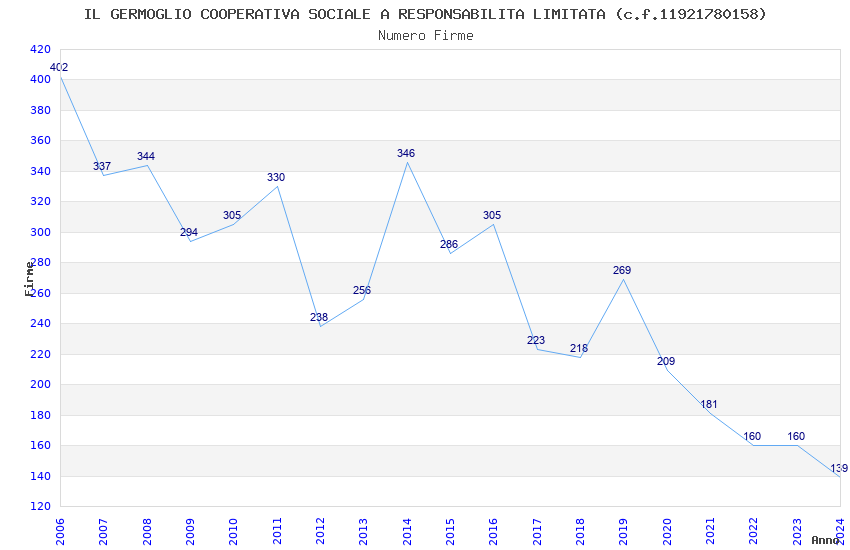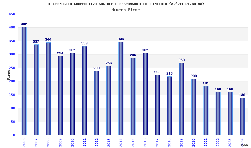 | Anno | Firme | Importi | Media | Naz. | Reg. | Prov. | Comu. |
