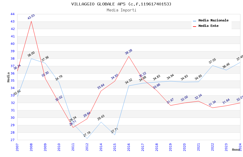 | Anno | Firme | Importi | Media | Naz. | Reg. | Prov. | Comu. |