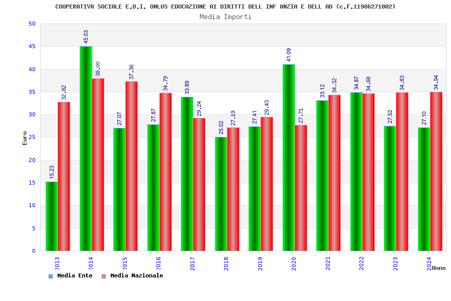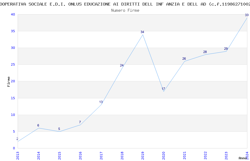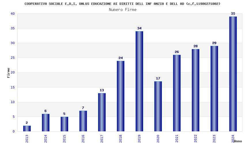 | Anno | Firme | Importi | Media | Naz. | Reg. | Prov. | Comu. |