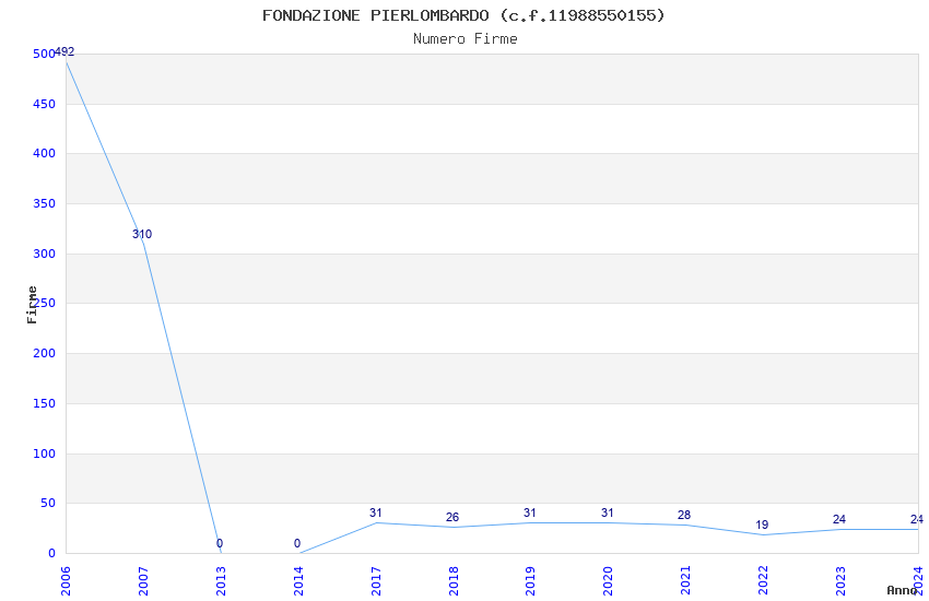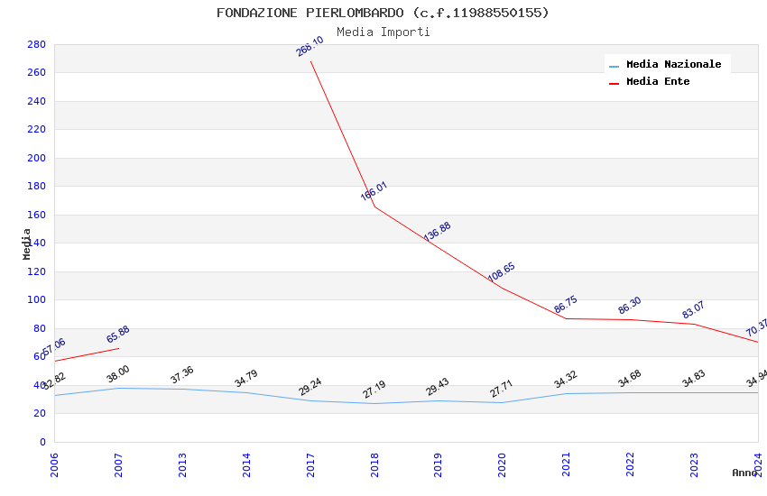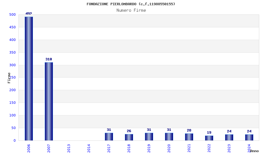 | Anno | Firme | Importi | Media | Naz. | Reg. | Prov. | Comu. |