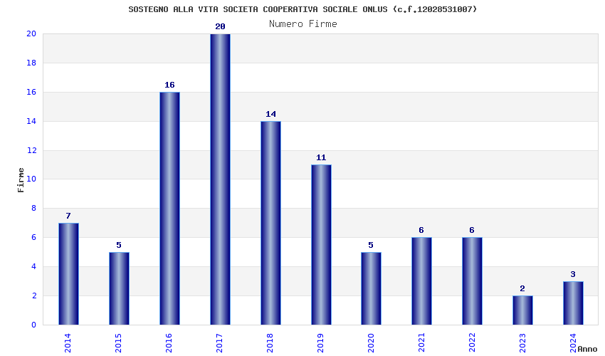 | Anno | Firme | Importi | Media | Naz. | Reg. | Prov. | Comu. |