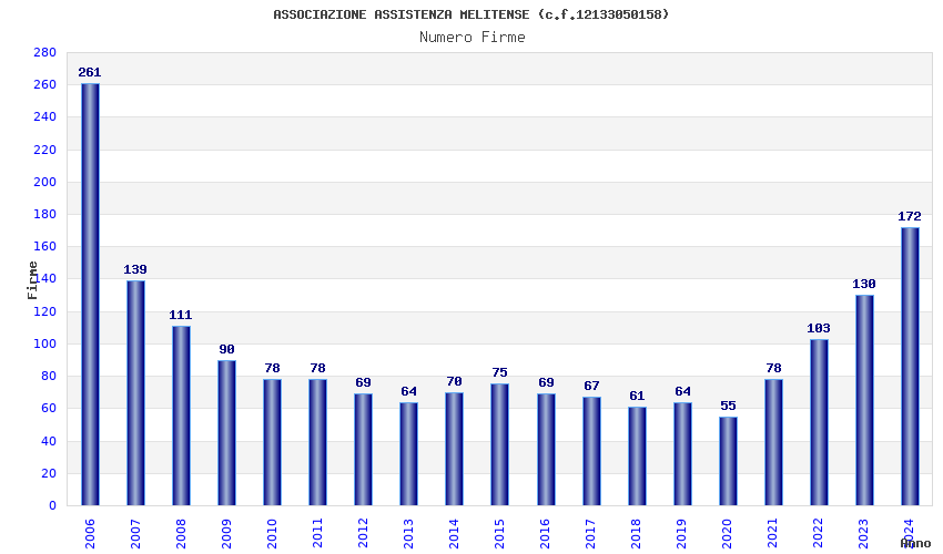 | Anno | Firme | Importi | Media | Naz. | Reg. | Prov. | Comu. |