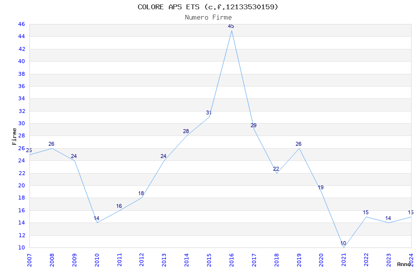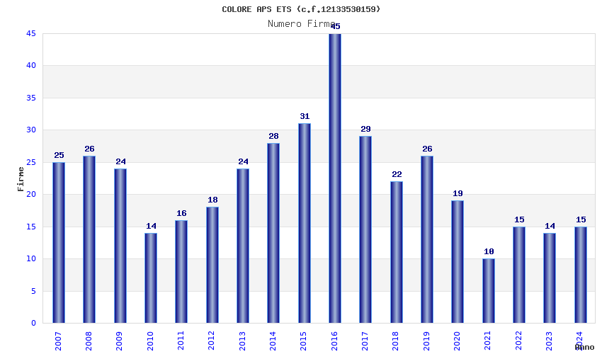 | Anno | Firme | Importi | Media | Naz. | Reg. | Prov. | Comu. |