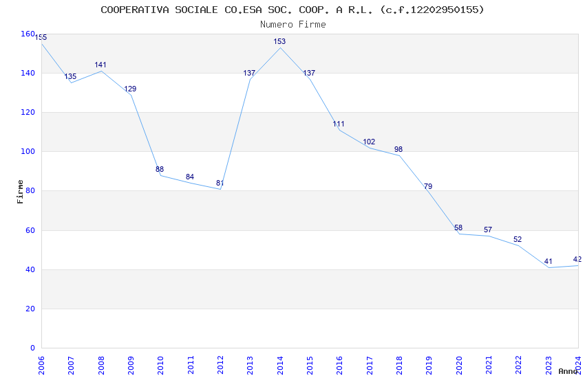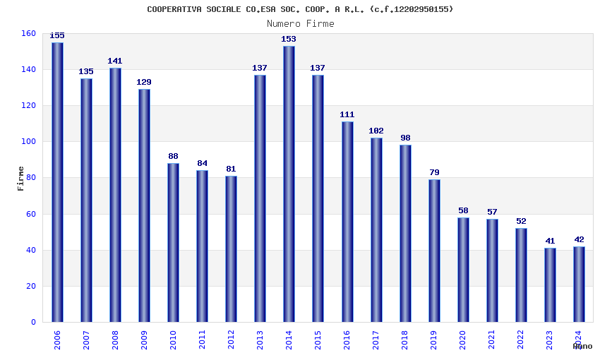 | Anno | Firme | Importi | Media | Naz. | Reg. | Prov. | Comu. |