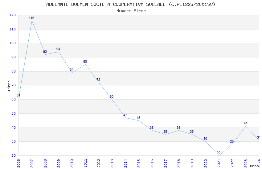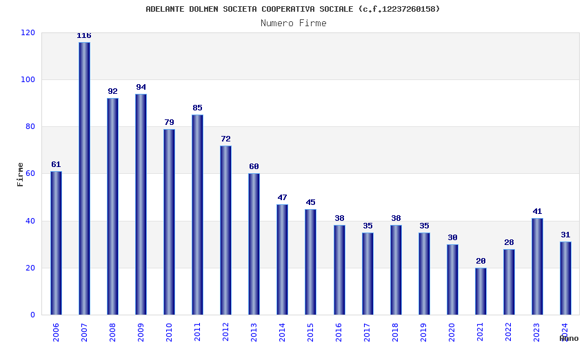 Anno Firme Importi Media Naz. Reg. Prov. Comu.