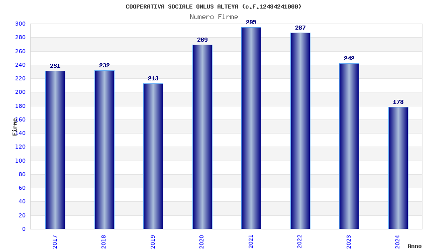 | Anno | Firme | Importi | Media | Naz. | Reg. | Prov. | Comu. |