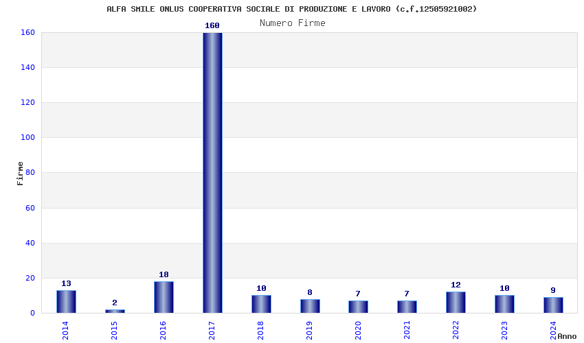 | Anno | Firme | Importi | Media | Naz. | Reg. | Prov. | Comu. |