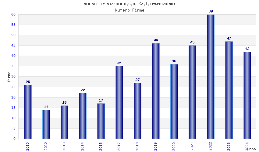 | Anno | Firme | Importi | Media | Naz. | Reg. | Prov. | Comu. |
