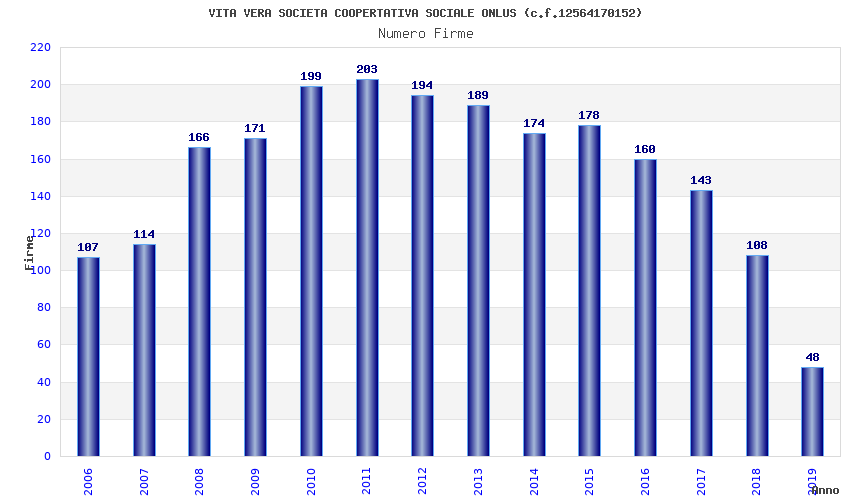 | Anno | Firme | Importi | Media | Naz. | Reg. | Prov. | Comu. |