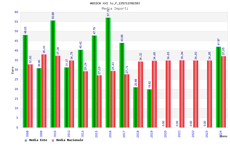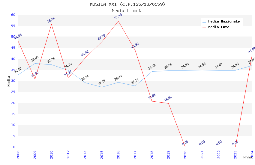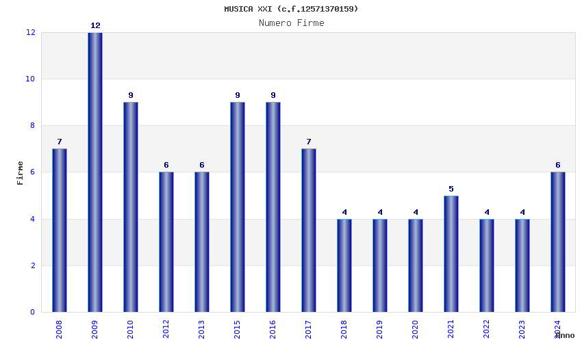 | Anno | Firme | Importi | Media | Naz. | Reg. | Prov. | Comu. |