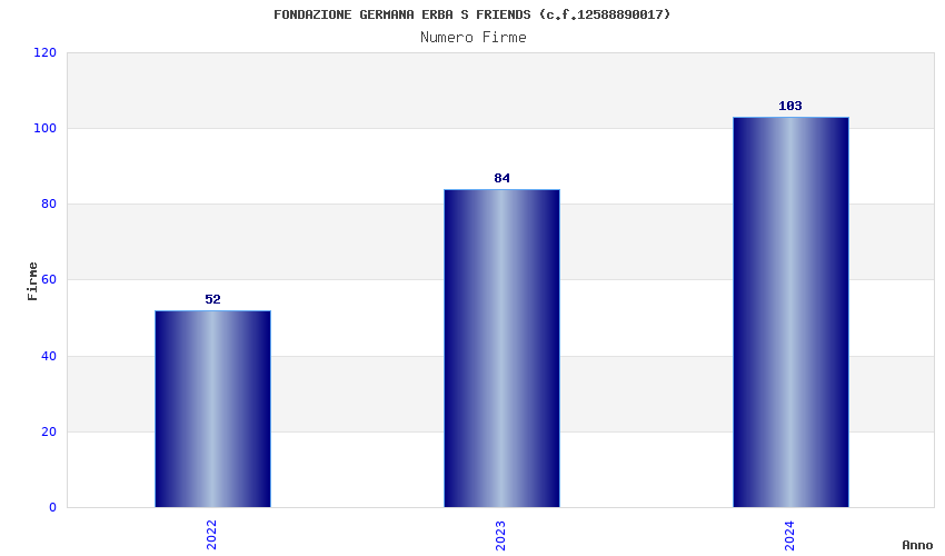 | Anno | Firme | Importi | Media | Naz. | Reg. | Prov. | Comu. |