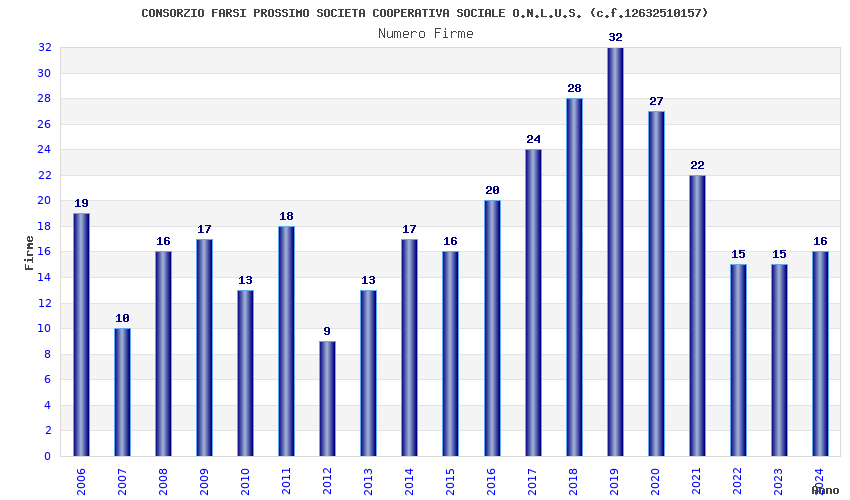 | Anno | Firme | Importi | Media | Naz. | Reg. | Prov. | Comu. |