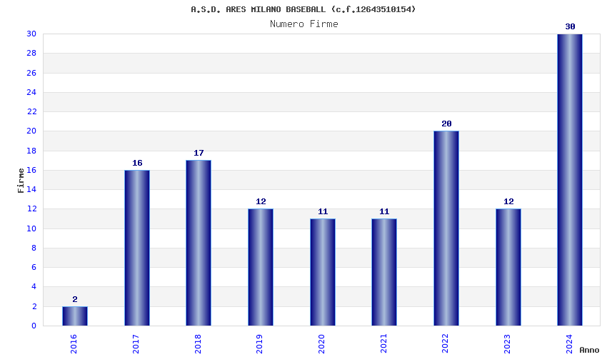 | Anno | Firme | Importi | Media | Naz. | Reg. | Prov. | Comu. |