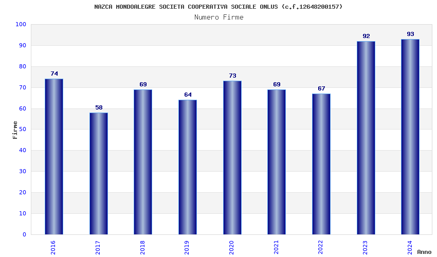 | Anno | Firme | Importi | Media | Naz. | Reg. | Prov. | Comu. |