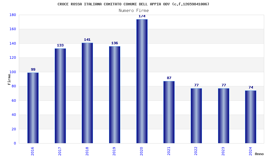 | Anno | Firme | Importi | Media | Naz. | Reg. | Prov. | Comu. |