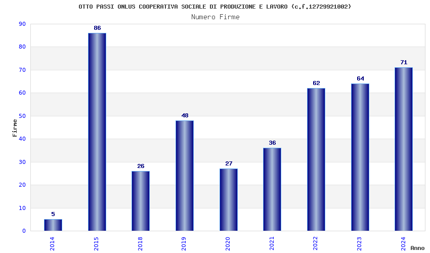 | Anno | Firme | Importi | Media | Naz. | Reg. | Prov. | Comu. |