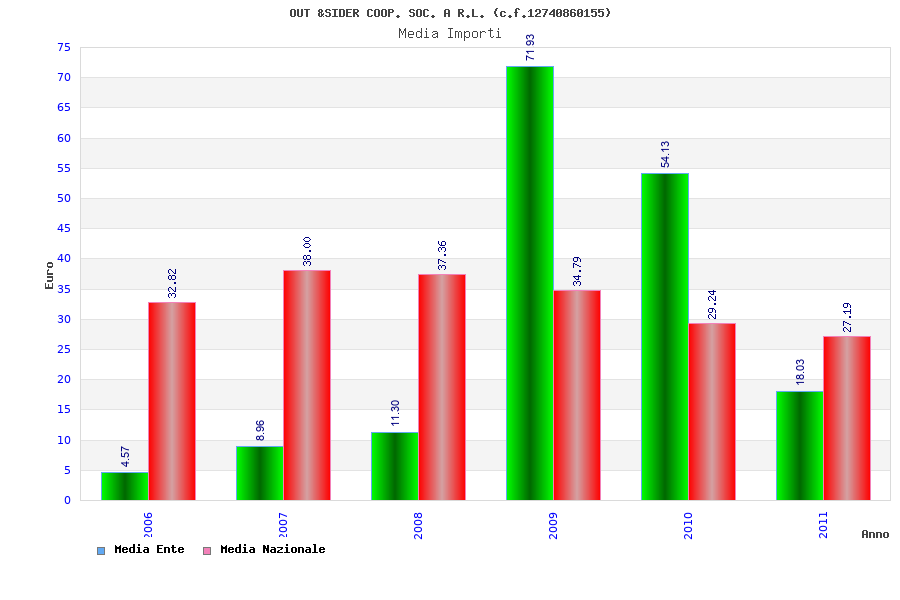 | Anno | Firme | Importi | Media | Naz. | Reg. | Prov. | Comu. |