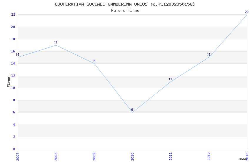 | Anno | Firme | Importi | Media | Naz. | Reg. | Prov. | Comu. |
