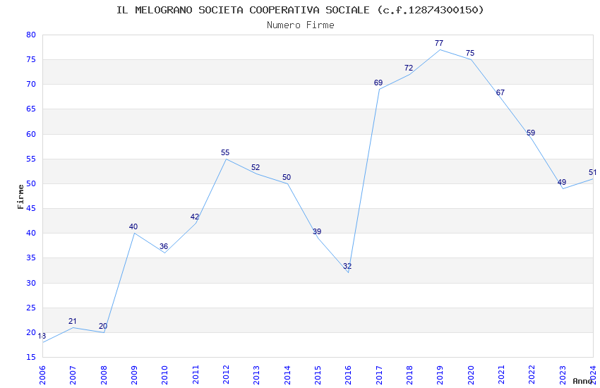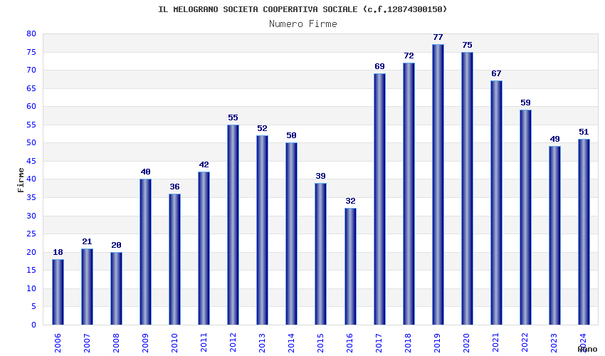 | 2019 | 77 | 2.772,52 | 36,01 | 18.863 | 4.293 | 1.556 | 16 |
