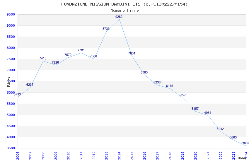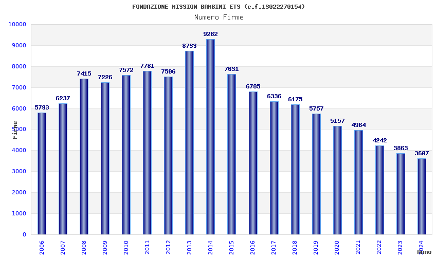 | Anno | Firme | Importi | Media | Naz. | Reg. | Prov. | Comu. |