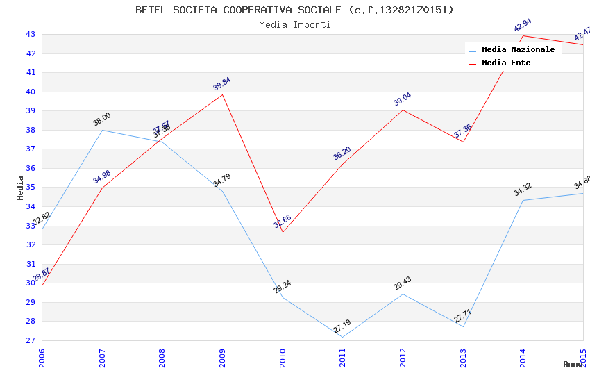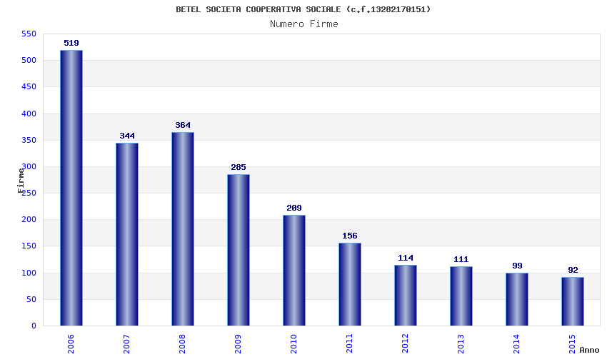 | Anno | Firme | Importi | Media | Naz. | Reg. | Prov. | Comu. |