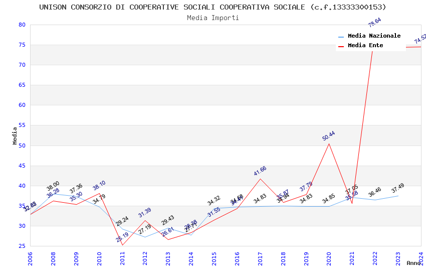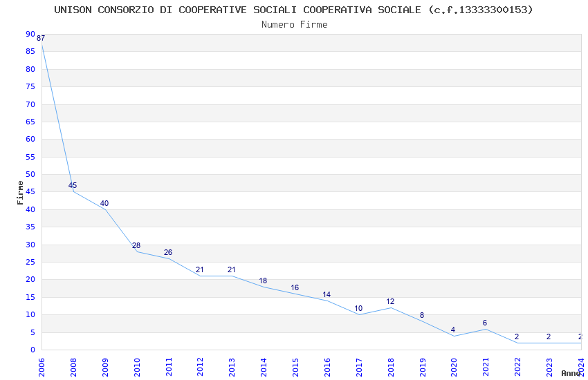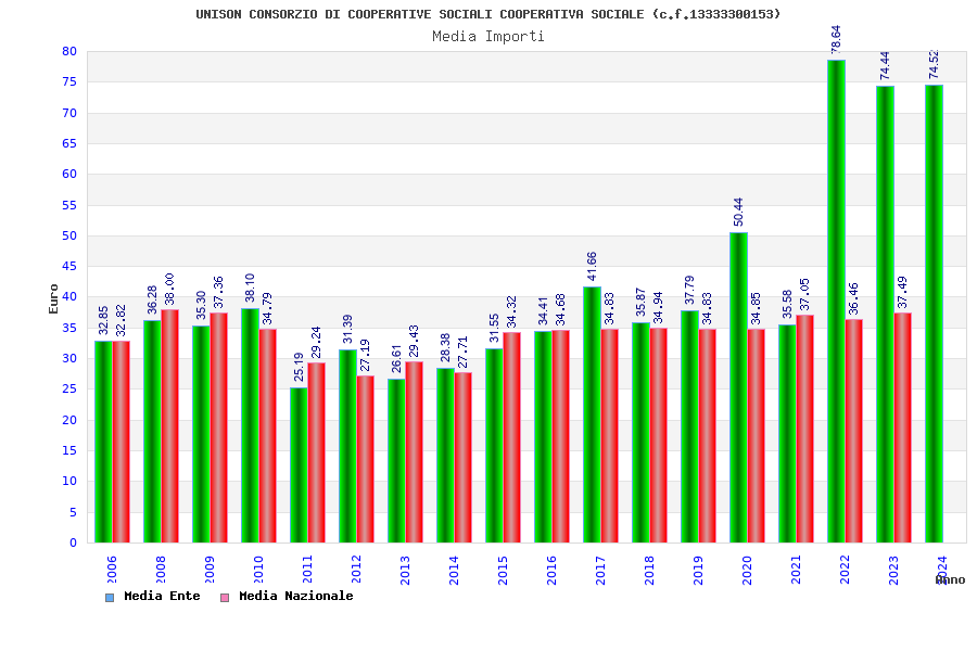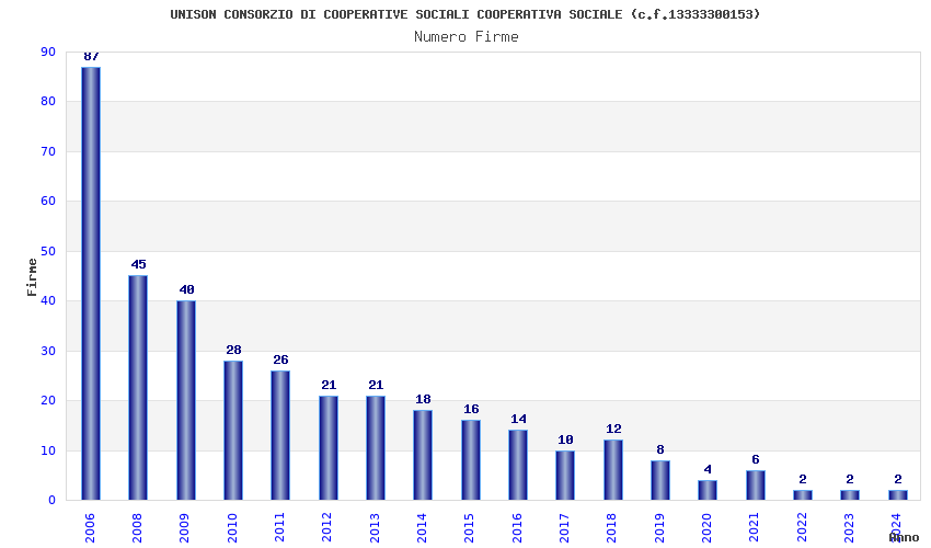 | Anno | Firme | Importi | Media | Naz. | Reg. | Prov. | Comu. |