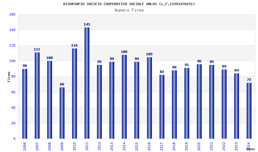 | Anno | Firme | Importi | Media | Naz. | Reg. | Prov. | Comu. |