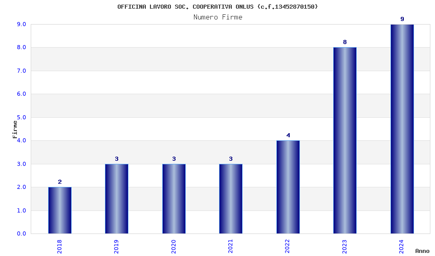 | Anno | Firme | Importi | Media | Naz. | Reg. | Prov. | Comu. |