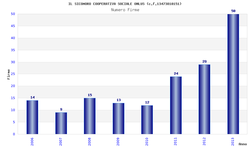 | Anno | Firme | Importi | Media | Naz. | Reg. | Prov. | Comu. |