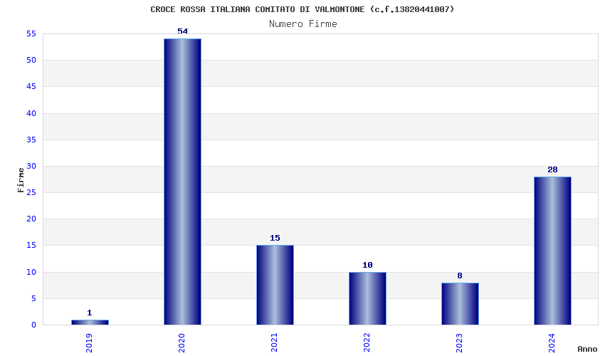 | Anno | Firme | Importi | Media | Naz. | Reg. | Prov. | Comu. |