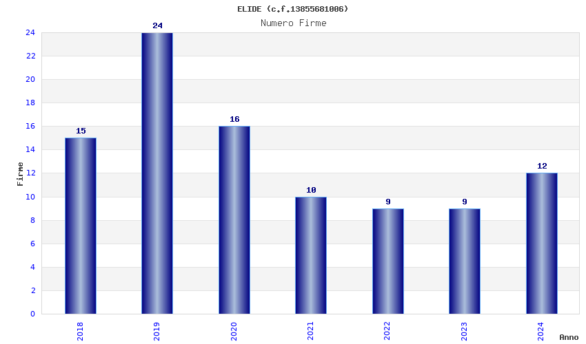 | Anno | Firme | Importi | Media | Naz. | Reg. | Prov. | Comu. |