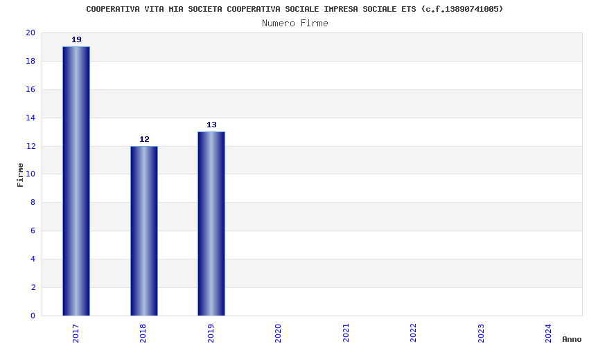| Anno | Firme | Importi | Media | Naz. | Reg. | Prov. | Comu. |
