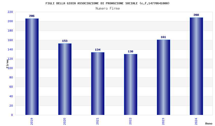 | Anno | Firme | Importi | Media | Naz. | Reg. | Prov. | Comu. |