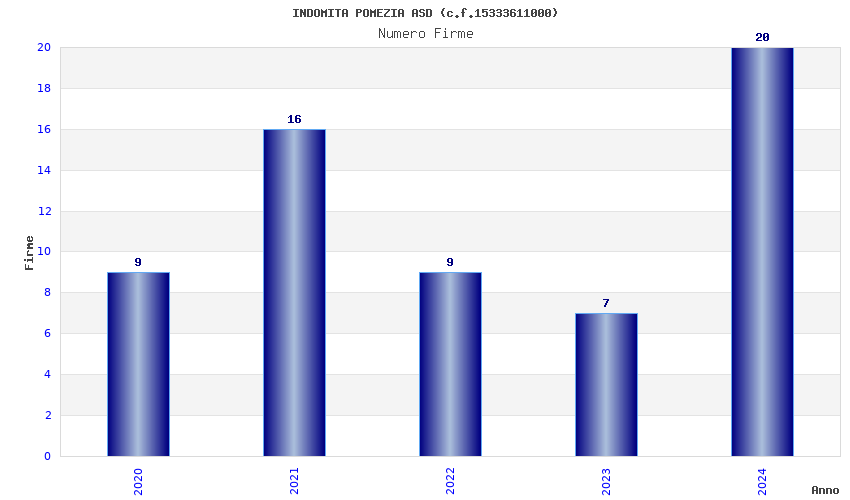 | Anno | Firme | Importi | Media | Naz. | Reg. | Prov. | Comu. |