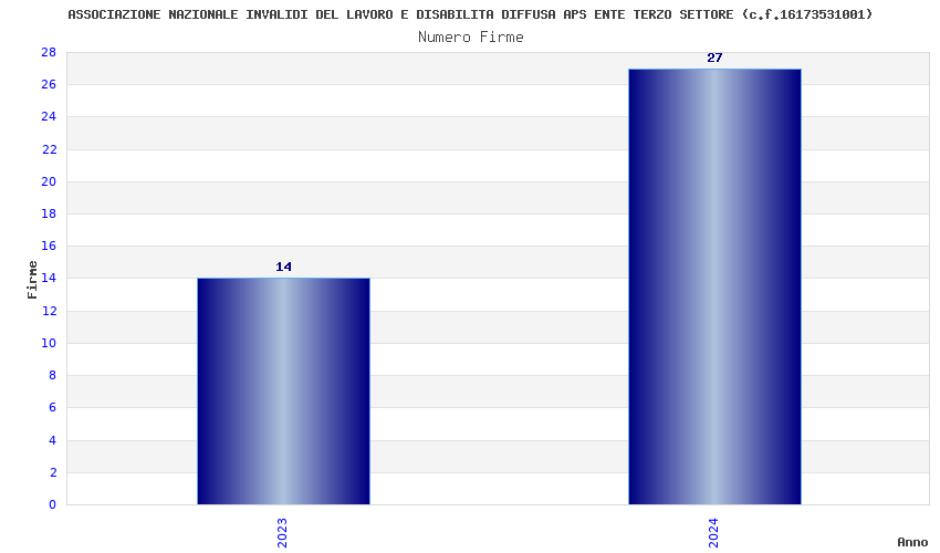 | Anno | Firme | Importi | Media | Naz. | Reg. | Prov. | Comu. |