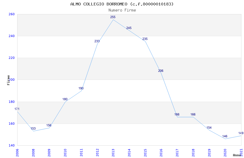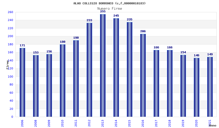 | Anno | Firme | Importi | Media | Naz. | Reg. | Prov. | Comu. |