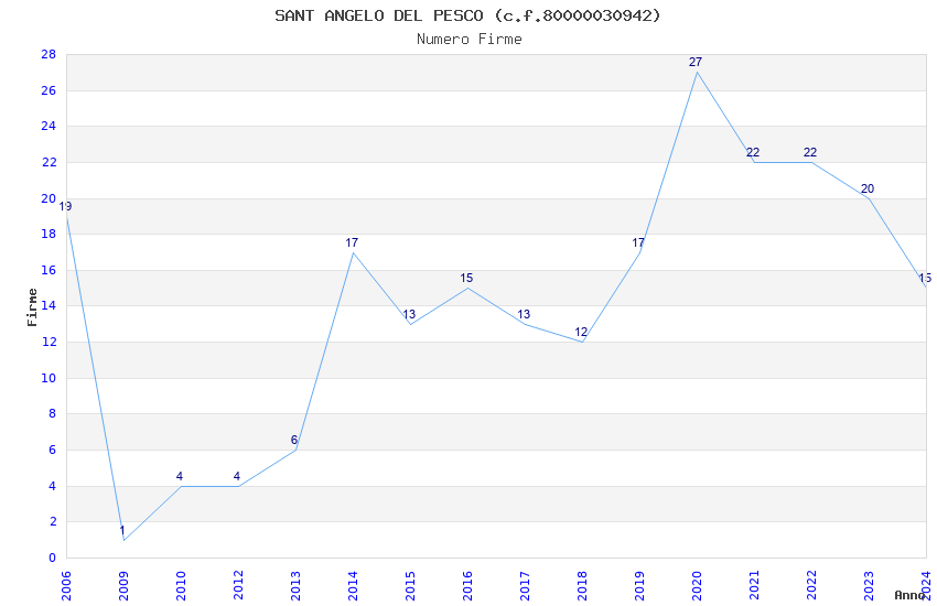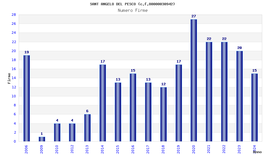 | Anno | Firme | Importi | Media | Naz. | Reg. | Prov. | Comu. |
