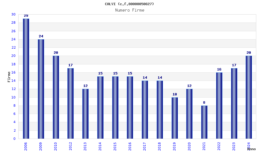 | Anno | Firme | Importi | Media | Naz. | Reg. | Prov. | Comu. |