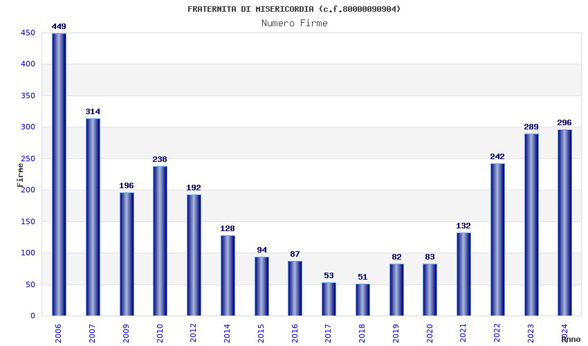| Anno | Firme | Importi | Media | Naz. | Reg. | Prov. | Comu. |