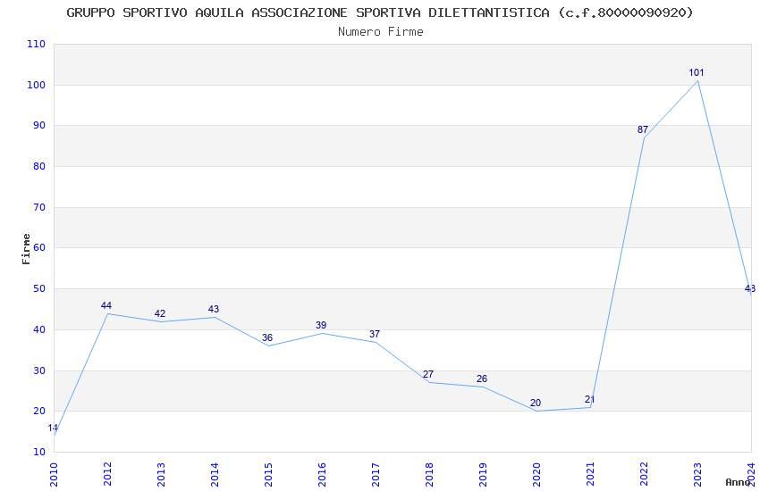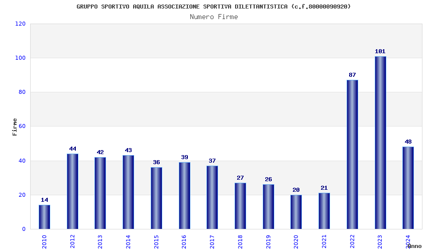 | 2023 | 101 | 3.950,00 | 39,11 | 13.587 | 206 | 86 | 55 |