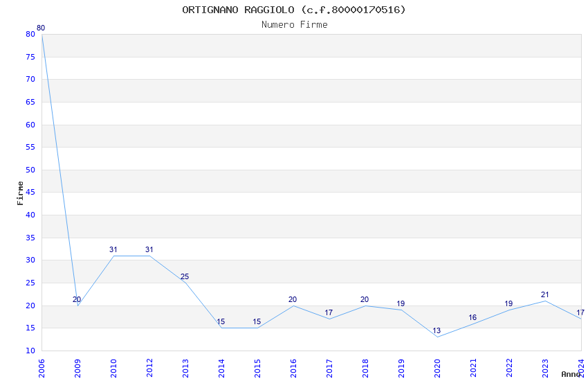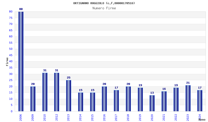 | Anno | Firme | Importi | Media | Naz. | Reg. | Prov. | Comu. |