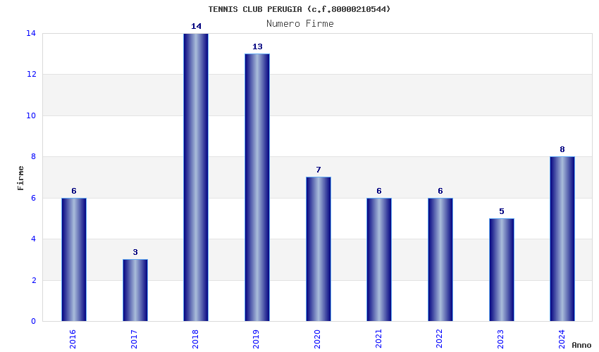 | Anno | Firme | Importi | Media | Naz. | Reg. | Prov. | Comu. |