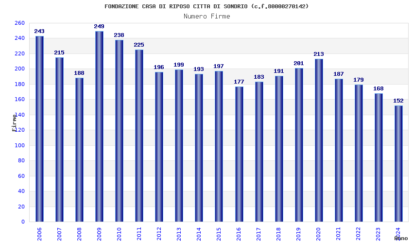 | Anno | Firme | Importi | Media | Naz. | Reg. | Prov. | Comu. |