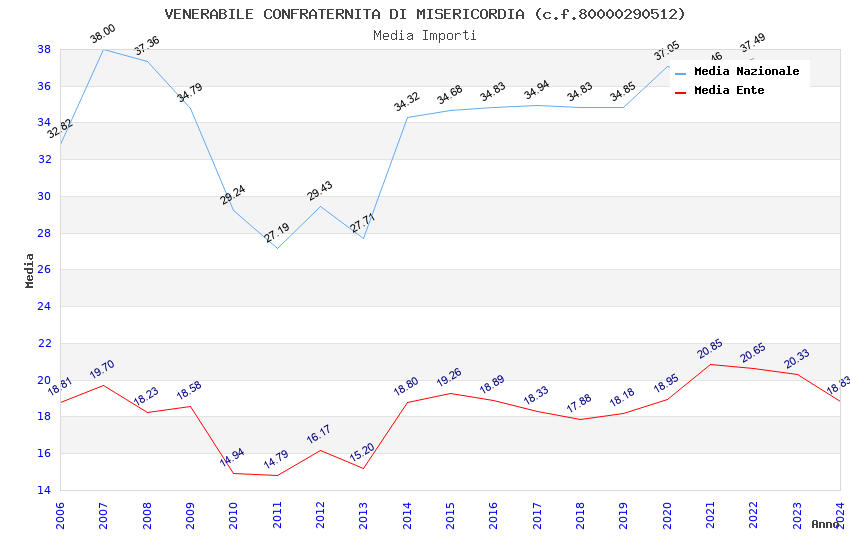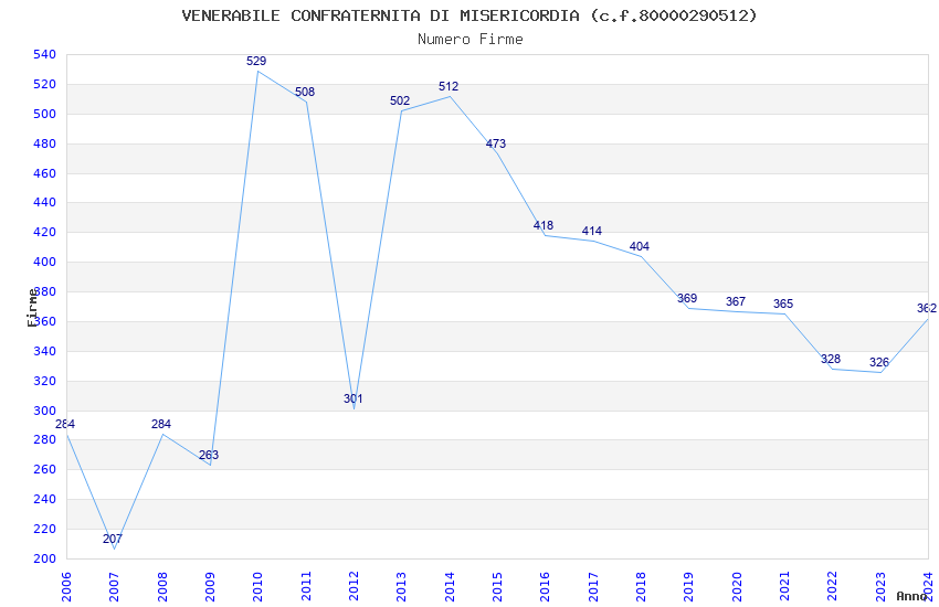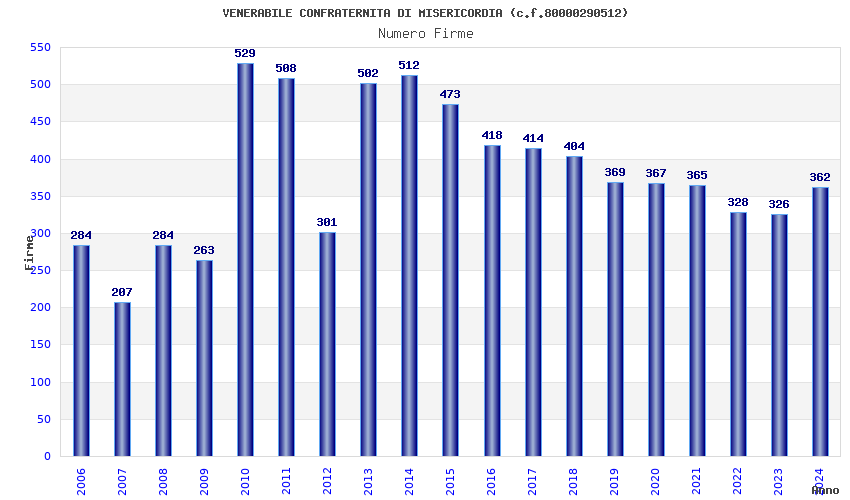 | Anno | Firme | Importi | Media | Naz. | Reg. | Prov. | Comu. |