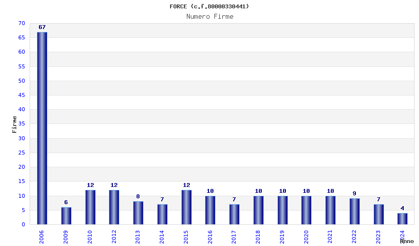 Anno Firme Importi Media Naz. Reg. Prov. Comu.