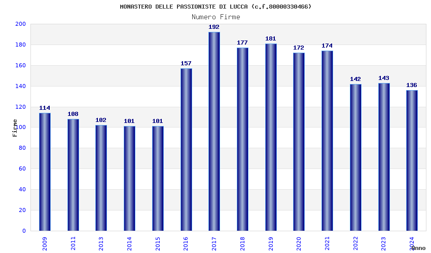 Anno Firme Importi Media Naz. Reg. Prov. Comu.