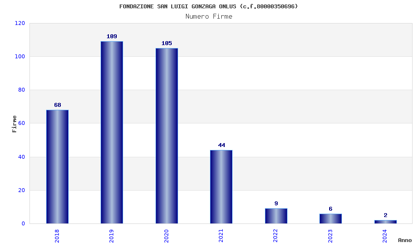 | Anno | Firme | Importi | Media | Naz. | Reg. | Prov. | Comu. |