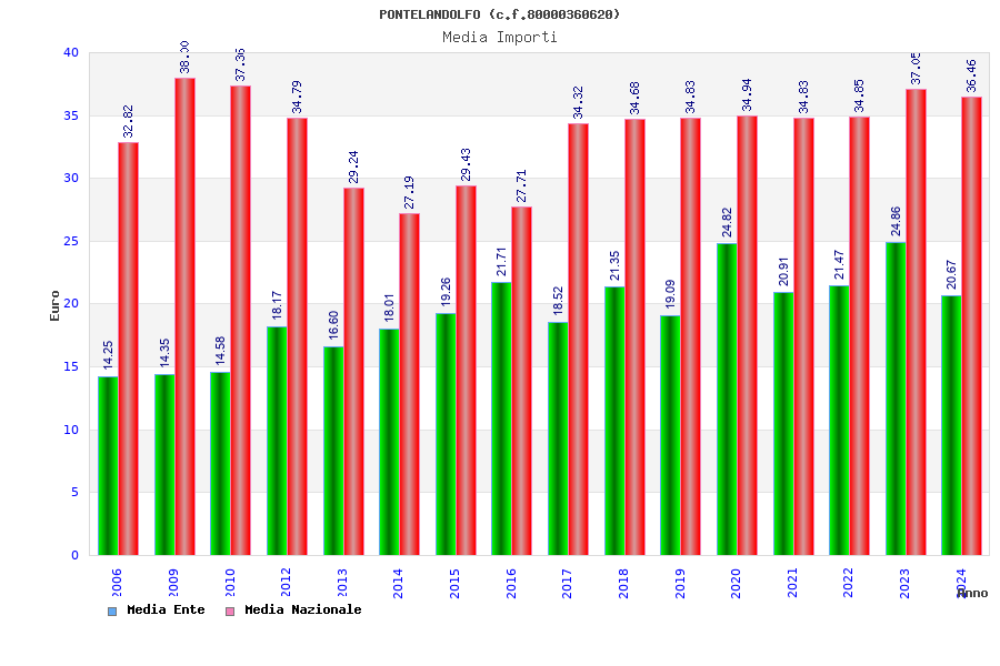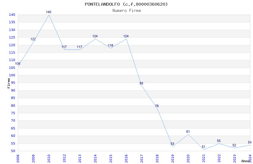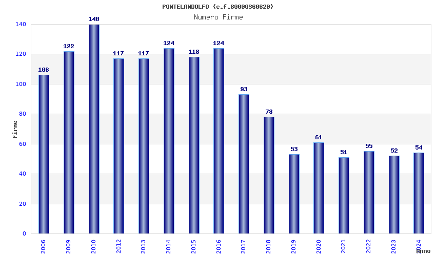 | Anno | Firme | Importi | Media | Naz. | Reg. | Prov. | Comu. |