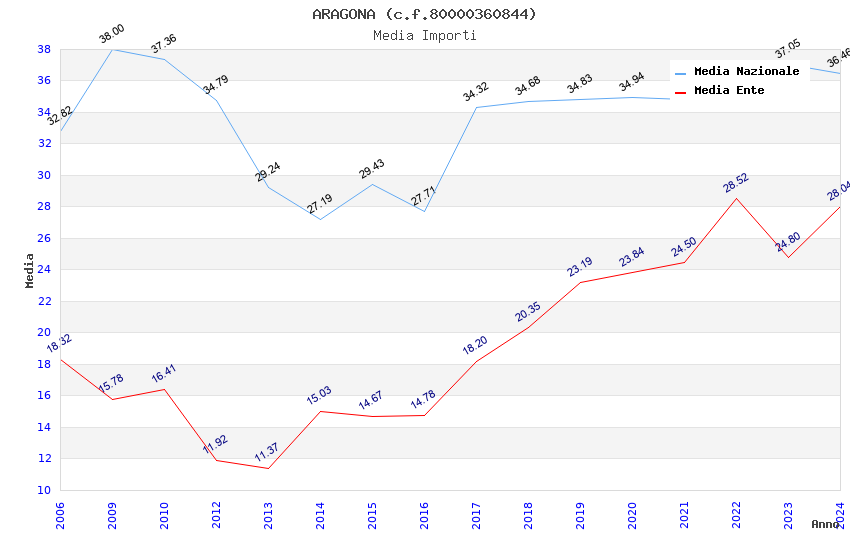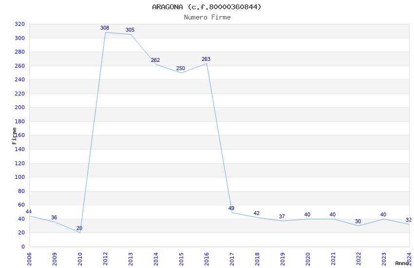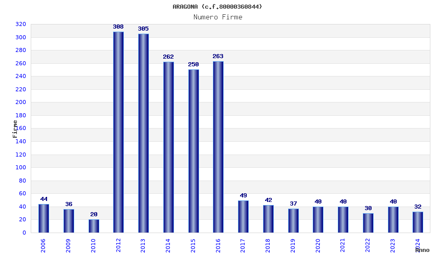 | Anno | Firme | Importi | Media | Naz. | Reg. | Prov. | Comu. |